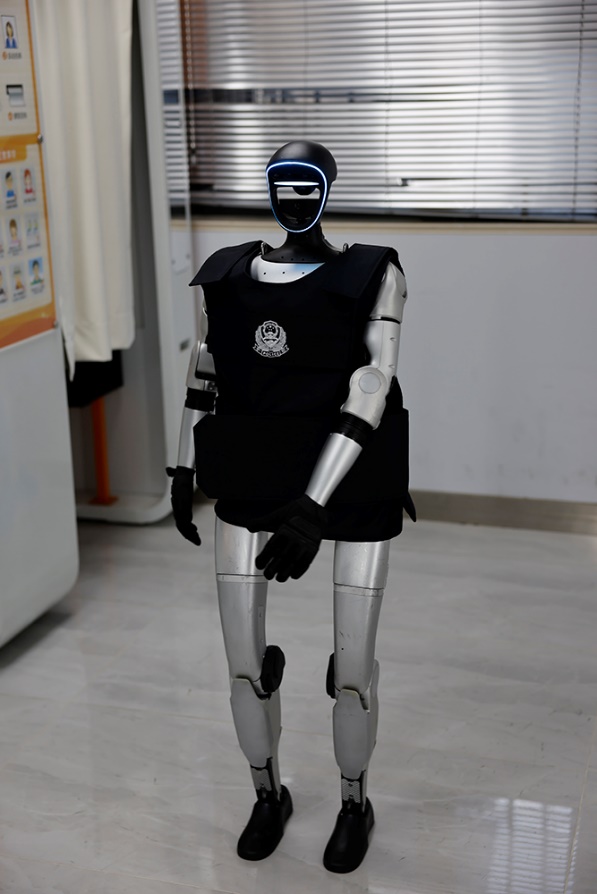 同样科技感满满的还有其他无人设备。在连云港市公安局海州分局郁洲路警务工作站,一款人形机器人格外引人注目。“这是我们第二代的AI警员,可以配合我们警员进行街面巡逻。”郁洲路警务工作站副站长朱军介绍,“它可以实现无感盘查,一旦发现可疑情况便可以通过前端感知设备将信息推送给民警。”