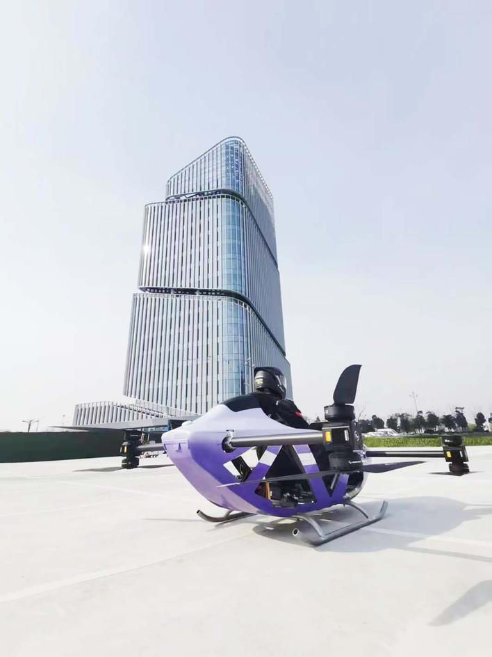 “未来交通”的探索已从实验室走向现实。10月1日,在生态科技新城双都大厦南广场,一架银灰色的飞行摩托以其流畅线条和未来感十足的设计,成为“网红”。这是由航空科技扬州实验室和沈阳飞机设计研究所扬州协同创新研究院联合研制的真实载人飞行器。“这是扬州在低空载人飞行器领域的首型成果,也是首次向公众展示,从设计、制造到试飞,整个流程都在扬州完成。”王志刚介绍,这款飞行摩托最大航时30分钟、航程达30公里,未来将应用于运动体验、政务巡查等场景。