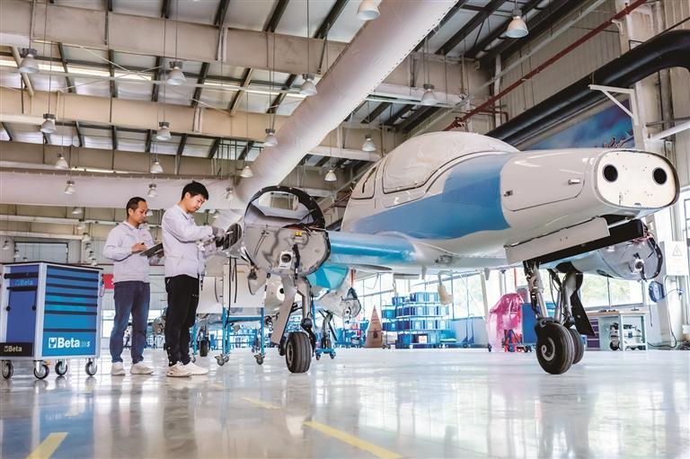 11月14日,在湾沚区中电科芜湖钻石飞机制造有限公司,工作人员正在飞机制造车间作业。近年来,湾沚区抢抓全域低空空域改革试点机遇,推动运输航空与通用航空协同发展。目前全区已构建覆盖研发制造、运营服务、维修保障的通航全产业链,实现飞行器核心部件100%本地配套,为长三角航空产业升级注入新动能。