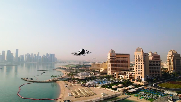 EH216-S无人驾驶载人航空器在多哈市飞行