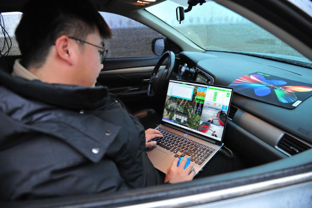 工作人员在检测无人机运行情况 (汪春林 摄)