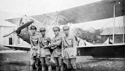 航校教官与教练机合影 秦国镛在高德隆教练机前留影