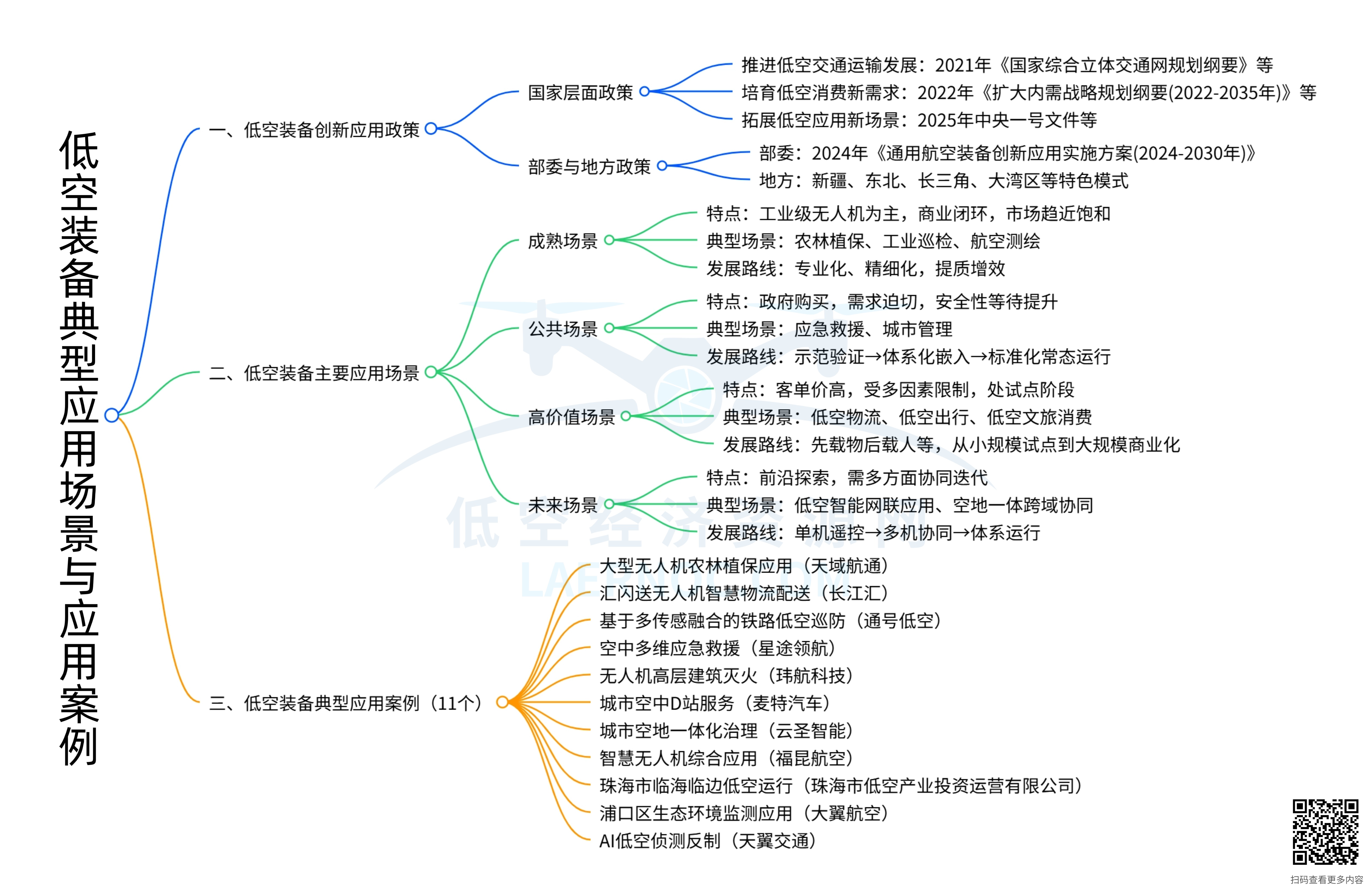 报告聚焦无人机、eVTOL等新型低空装备及智能网联新技术应用,综合政策导向及产业实践,将低空装备主要应用场景划分为成熟场景、公共场景、高价值场景及未来场景四类,重点介绍了场景特点、细分典型场景及未来发展方向,匹配企业典型案例和装备创新应用模式,为推进低空新技术新产品新场景大规模应用示范提供支撑。