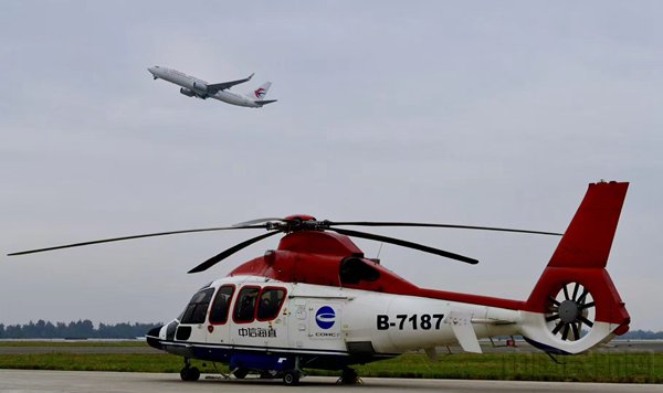 “海岛快巴”直升机与民航客机在舟山机场同框