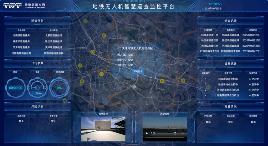 集团以轨道保护区巡检业务为基础,打造覆盖天津地铁网络的轨道交通线路基础设施无人机综合巡检系统。通过先进AI算法与低空飞行技术深度融合,创新构建起“空—天—地”一体化的保护区巡查作业新模式,有效破解传统地铁巡检面临人工成本高、覆盖范围有限、隐患发现滞后等痛点。一期10套固定式无人机系统及飞行控制平台9月底完成建设,实现5、6、9、10、津静线等5条线路保护区常态化巡检。算法识别准确率达95%以上,巡检效率较人工提升6倍,隐患处置效率提升40%。以该平台为骨架,积极向城市巡检突破,促进在市政基础设施、河道巡检、城市安全、交通管理、应急运输等城市场景应用。目前已成功向电力外线巡检、PPP线路保护区巡检等项目拓展业务。