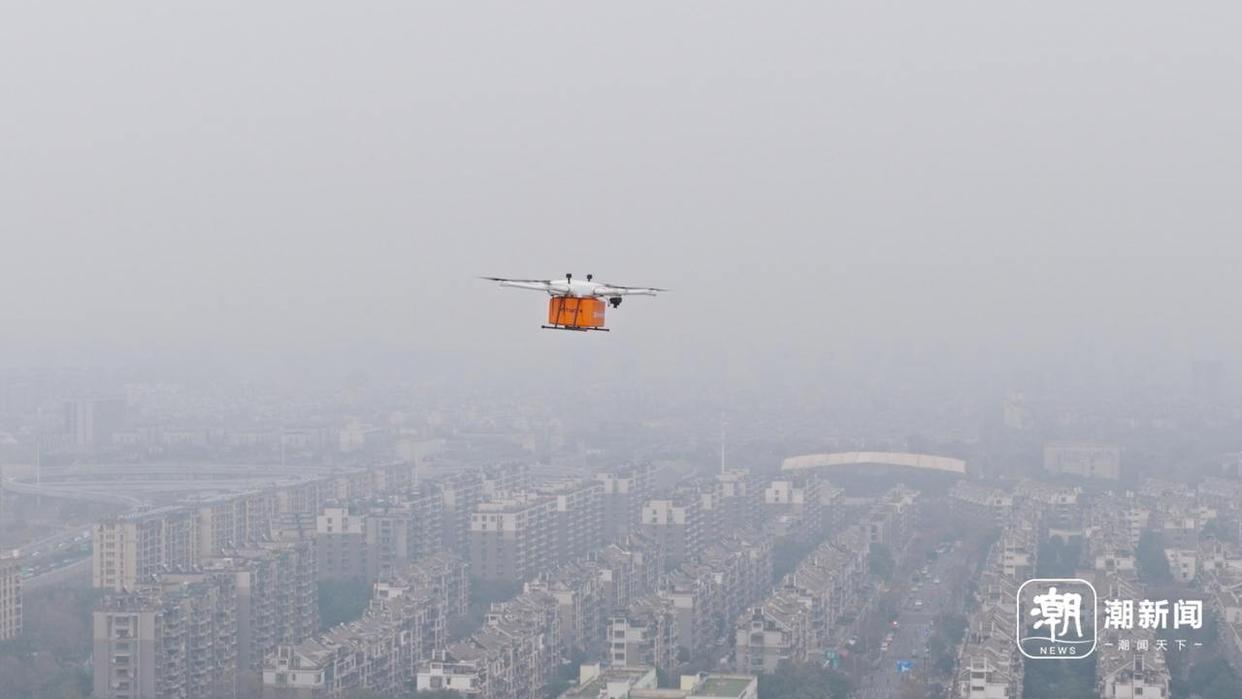 1月26日是农历腊月初八。上午9:26,多旋翼物流无人机搭载着腊八粥,从杭州西湖区留下街道法华17街区稳稳起飞。过了5分钟左右,无人机就跨越5公里,精准停靠在银发西溪Mall的广场上。