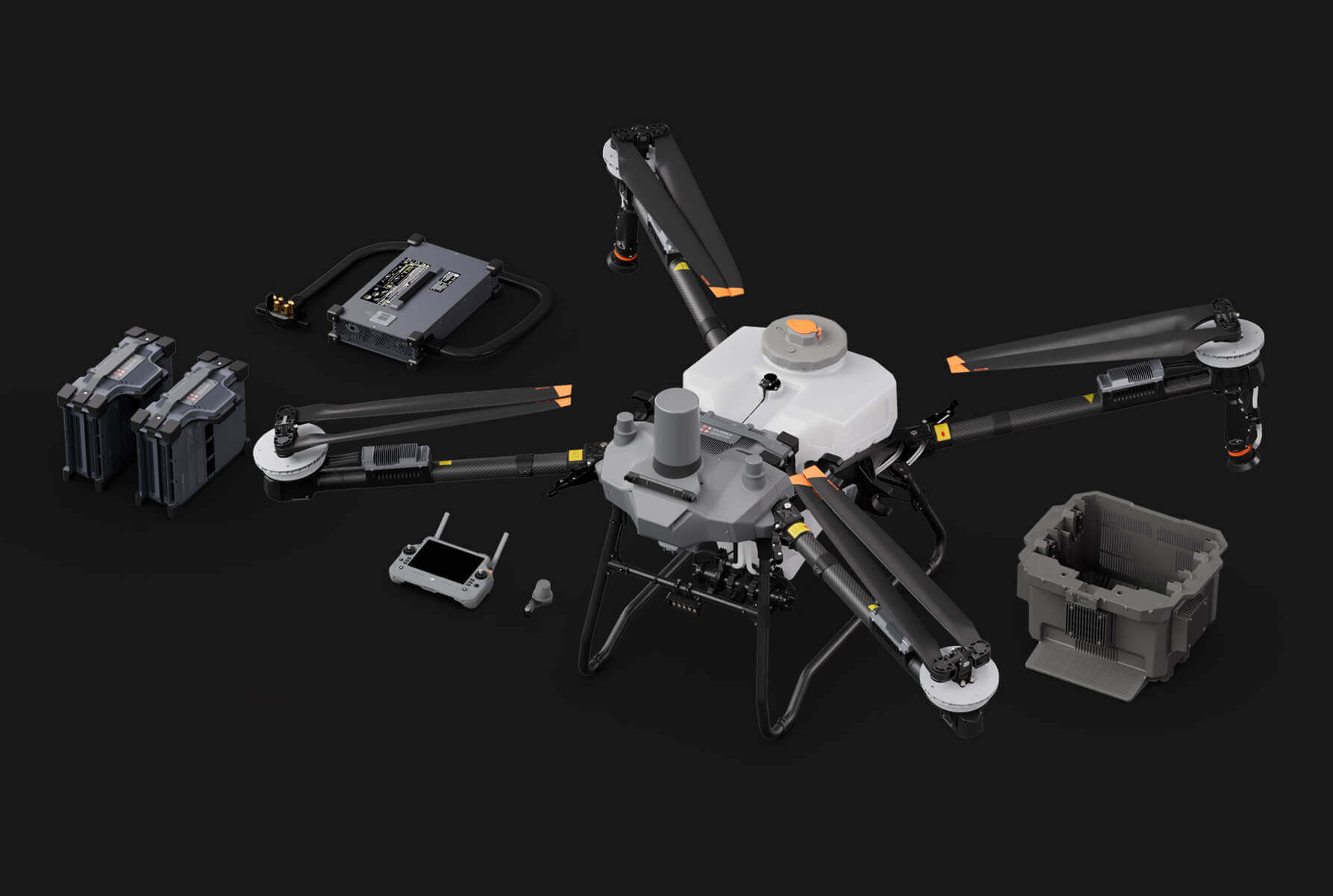 T70 系列标配双重雾化离心喷头,超大流量,雾滴均匀细密。果树用户还能选配弥雾喷头套装,流量、雾化效果全面升级,植株高、冠层厚的果树也能穿透叶背。