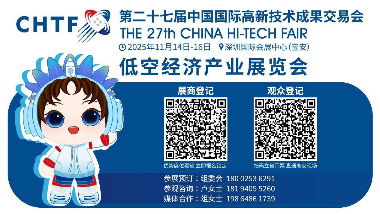 2025年11月14-16日,第二十七届中国国际高新技术成果交易会将在深圳国际会展中心(宝安)盛大启幕,本届展会并特别设立低空经济产业展览会展区(16号馆),全景呈现低空经济产业生态的创新突破。