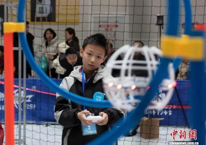 五年级的冯荣轩此次参与了球形无人机对抗赛。“我在一年级的时候接触到无人机,对它很感兴趣。为了这次比赛,我还加入俱乐部开展特训。”冯荣轩表示,希望能不断提高自己的无人机操控能力,“长大后带爸爸妈妈旅游,用无人机拍‘大片’。”