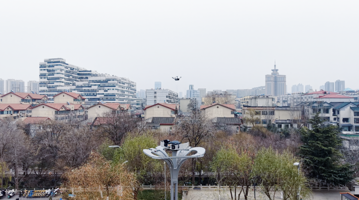 这是济南能源集团所属济南低空经济发展集团(以下简称“济南低空集团”)正在试点推广的“智慧灯杆+无人机库”城市巡查新场景,也是济南发力“低空经济”,推动城市治理数智化转型的一个生动切片。