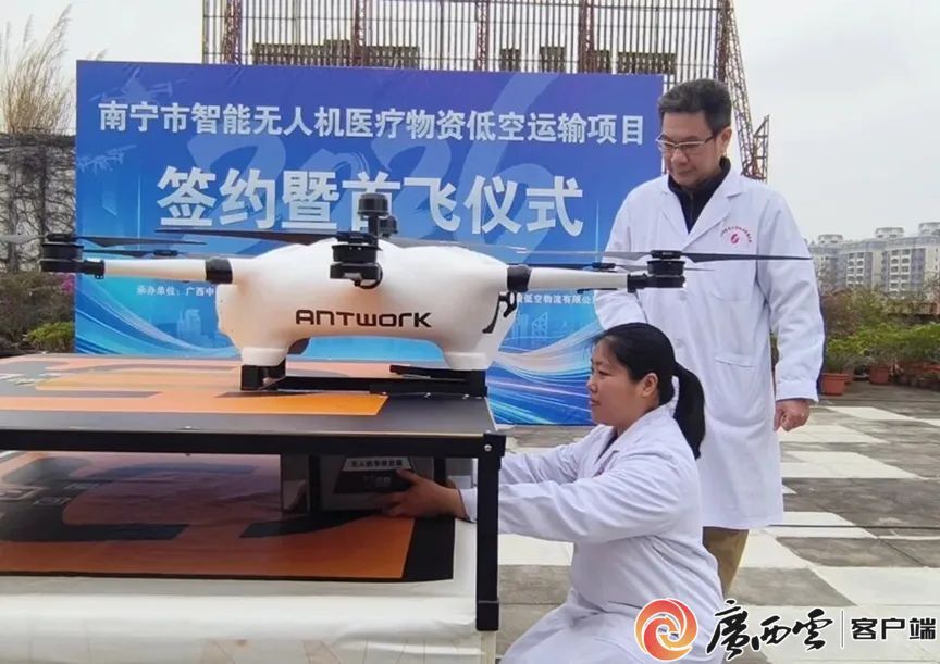 当日,南宁市首条智能无人机医疗物资低空运输航线签约及首飞仪式在广西中医药大学附属瑞康医院举行。这一重要举措,标志着南宁医疗应急配送迈入“低空时代”,为群众生命健康筑牢科技防线。