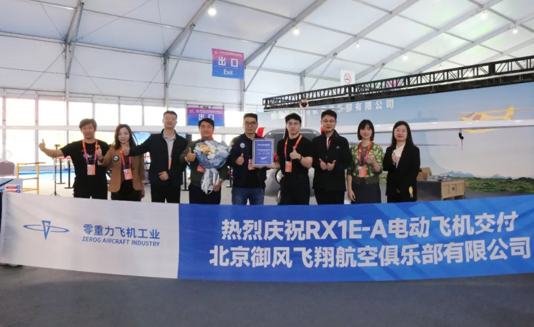 10月16日,在2C106展位现场,零重力飞机工业正式向北京御风飞翔航空俱乐部有限公司(以下简称“北京御风飞翔”)交付了1架锐翔RX1E-A电动飞机。2025年9月,零重力飞机工业与北京御风飞翔正式签署了经销合作协议,仅一个月的时间,双方合作实现快速深化,进一步达成10架锐翔RX1E-A飞机的意向订单,并于本次展会现场完成了1架飞机的交付。