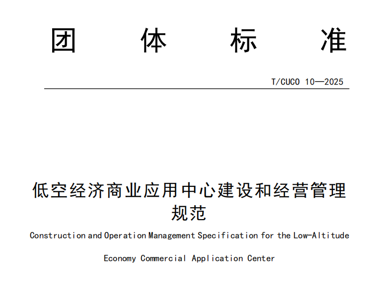 近日,由中国城市商业网点建设管理联合会归口管理、中国城商联低空经济商业应用工作委员会提出并组织制定的《低空经济商业应用中心建设和经营管理规范》全国团体标准,已于2025年11月19日正式在全国团体标准信息平台发布。作为我国低空经济商业应用领域的首项规范化、标准化指导文件,该标准填补了行业空白,为低空经济商业应用中心的建设与运营提供了科学规范的指引,标志着我国低空经济商业应用从“探索发展”进入“标准引领”的新阶段,将进一步推动低空产业健康有序发展,为经济社会高质量发展注入新动能。